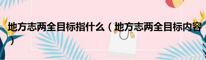 导读 大家好,小东方来为大家解答以上的问题。地方志两全目标指什么,地方志两全目标内容这个很多人还不知道,现在让我们一起来看看吧!1、就是把