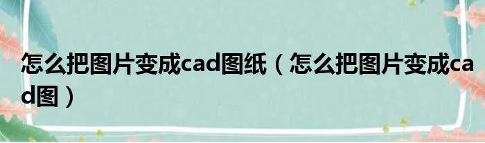 怎么把图片变成cad图纸(怎么把图片变成cad图)