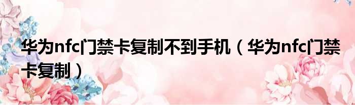 华为nfc门禁卡复制不到手机(华为nfc门禁卡复制)