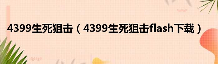 大家好,小东方来为大家解答以上的问题。4399生死狙击,4399生死狙击flash下载这个很多人还不知道,现在让我们一起来看看吧!