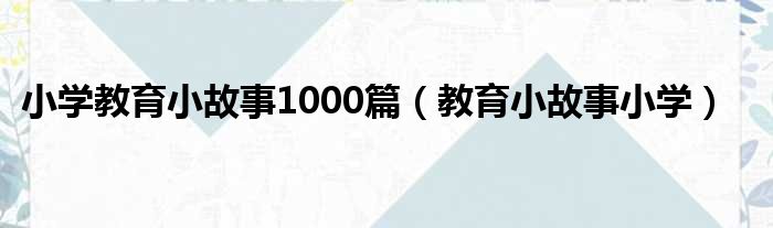 大家好,小东方来为大家解答以上的问题。小学教育小故事1000篇,教育小故事小学这个很多人还不知道,现在让我们一起来看看吧!