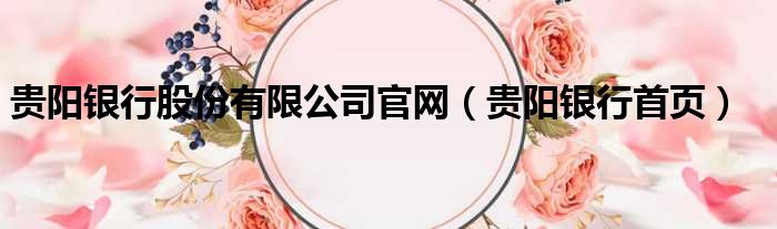 贵阳银行股份有限公司官网(贵阳银行首页)