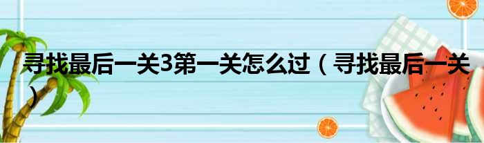寻找最后一关3第一关怎么过(寻找最后一关)