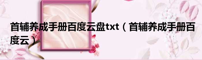 首辅养成手册百度云盘txt(首辅养成手册百度云)
