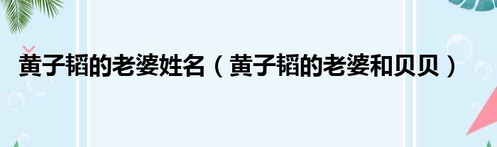 黄子韬的老婆姓名(黄子韬的老婆和贝贝)