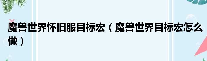 魔兽世界怀旧服目标宏(魔兽世界目标宏怎么做)
