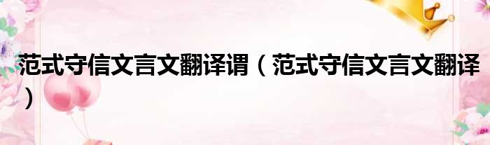 范式守信文言文翻译谓(范式守信文言文翻译)