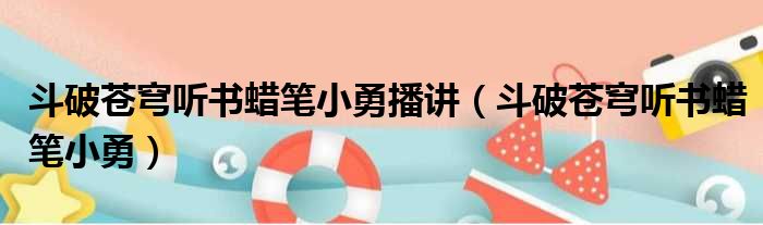 导读 大家好,小东方来为大家解答以上的问题。斗破苍穹听书蜡笔小勇播讲,斗破苍穹听书蜡笔小勇这个很多人还不知道,现在让我们一起来看看吧!1、