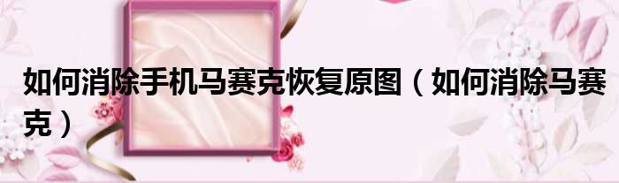 如何消除手机马赛克恢复原图(如何消除马赛克)