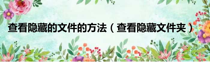 大家好,小活来为大家解答以上问题。查看隐藏的文件的方法,查看隐藏文件夹很多人还不知道,现在让我们一起来看看吧!