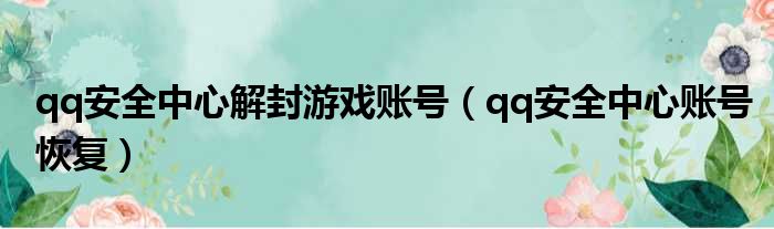 qq安全中心解封游戏账号(qq安全中心账号恢复)