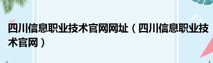 四川信息职业技术官网网址(四川信息职业技术官网)