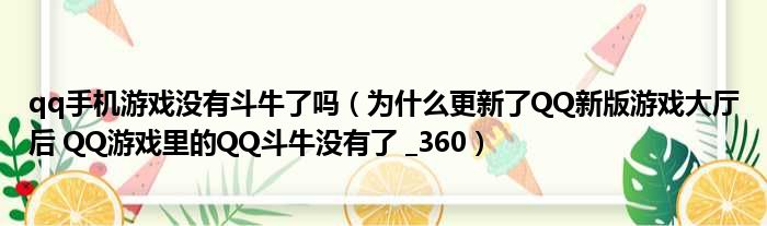 导读 大家好,小东方来为大家解答以上的问题。qq手机游戏没有斗牛了吗,为什么更新了QQ新版游戏大厅后 QQ游戏里的QQ斗牛没有了 _360这个很多人