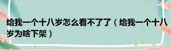 给我一个十八岁怎么看不了了(给我一个十八岁为啥下架)