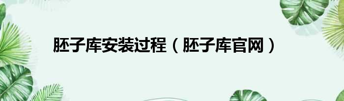 胚子库安装过程(胚子库官网)