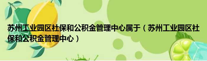 苏州工业园区社保和公积金管理中心属于(苏州工业园区社保和公积金管理中心)