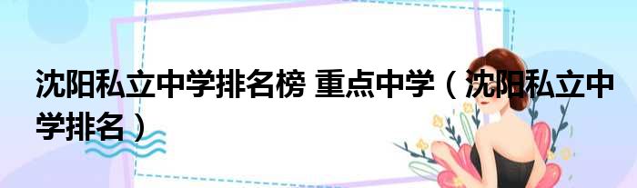 沈阳私立中学排名榜 重点中学(沈阳私立中学排名)
