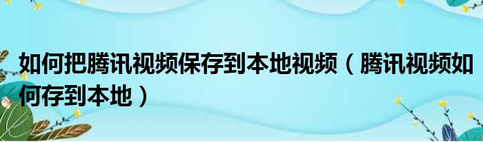 如何把腾讯视频保存到本地视频(腾讯视频如何存到本地)