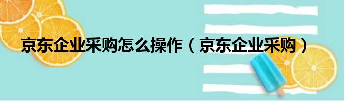 京东企业采购怎么操作(京东企业采购)