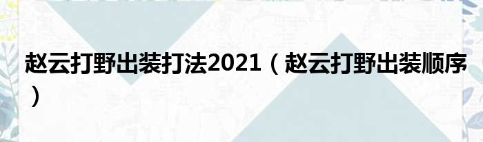 导读 大家好,小活来为大家解答以上问题。赵云打野出装打法2021,赵云打野出装顺序很多人还不知道,现在让我们一起来看看吧!1、首先,作为一个