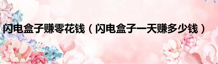 闪电盒子赚零花钱(闪电盒子一天赚多少钱)