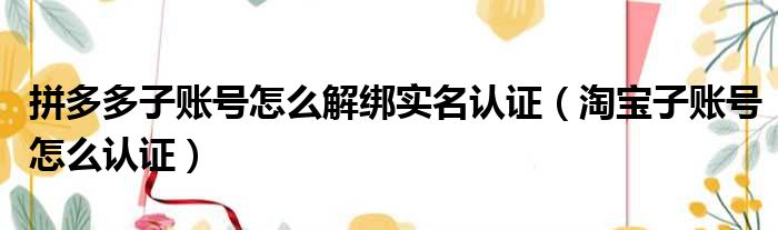 拼多多子账号怎么解绑实名认证(淘宝子账号怎么认证)