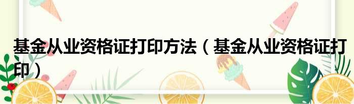 基金从业资格证打印方法(基金从业资格证打印)