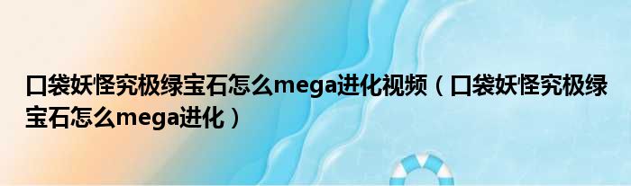 口袋妖怪究极绿宝石怎么mega进化视频(口袋妖怪究极绿宝石怎么mega进化)