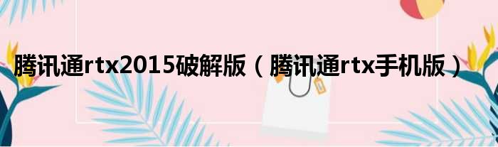 导读 大家好,小活来为大家解答以上问题。腾讯通rtx2015破解版,腾讯通rtx手机版很多人还不知道,现在让我们一起来看看吧!1、先装在手机上。RTX