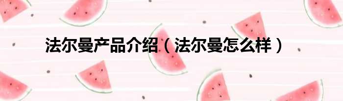 法尔曼产品介绍(法尔曼怎么样)