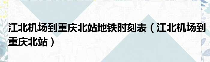 江北机场到重庆北站地铁时刻表(江北机场到重庆北站)