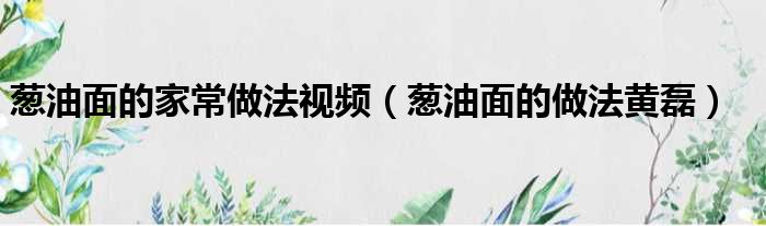 葱油面的家常做法视频(葱油面的做法黄磊)