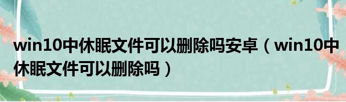 win10中休眠文件可以删除吗安卓(win10中休眠文件可以删除吗)