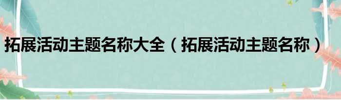 大家好,小东方来为大家解答以上的问题。拓展活动主题名称大全,拓展活动主题名称这个很多人还不知道,现在让我们一起来看看吧!