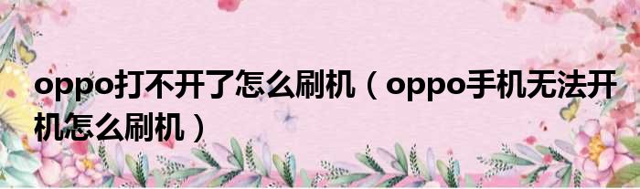 oppo打不开了怎么刷机(oppo手机无法开机怎么刷机)