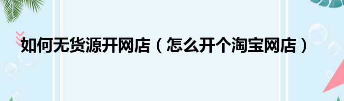 大家好,小活来为大家解答以上问题。如何无货源开网店,怎么开个淘宝网店很多人还不知道,现在让我们一起来看看吧!