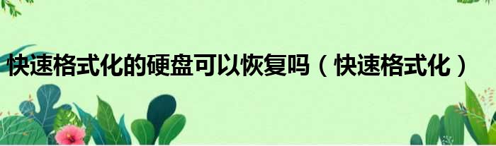 快速格式化的硬盘可以恢复吗(快速格式化)