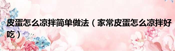 皮蛋怎么凉拌简单做法(家常皮蛋怎么凉拌好吃)