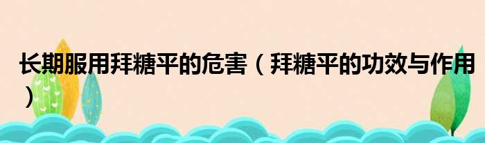 导读 大家好,小东方来为大家解答以上的问题。长期服用拜糖平的危害,拜糖平的功效与作用这个很多人还不知道,现在让我们一起来看看吧!1、拜糖平
