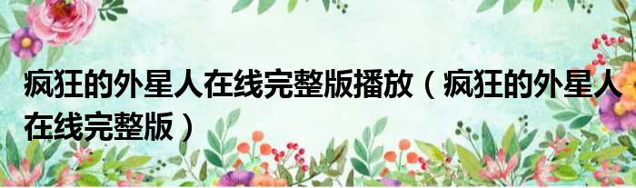 疯狂的外星人在线完整版播放(疯狂的外星人在线完整版)