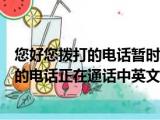 大家好,小东方来为大家解答以上的问题。您好您拨打的电话暂时无法接通是被拉黑了吗,您好您拨打的电话正在通话中英文这个很多人还不知道,现 浏览全文>>