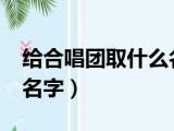 大家好,小东方来为大家解答以上的问题。给合唱团取什么名字比较好?,想给合唱团起名字这个很多人还不知道,现在让我们一起来看看吧!1、风笛 浏览全文>>