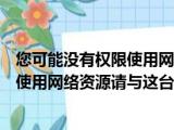 大家好,小东方来为大家解答以上的问题。您可能没有权限使用网络资源请与这台服,您可能没有权限使用网络资源请与这台这个很多人还不知道,现 浏览全文>>