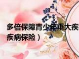 大家好,小东方来为大家解答以上的问题。多倍保障青少年重大疾病保险(A1款),多倍保障青少年重大疾病保险这个很多人还不知道,现在让我们一起 浏览全文>>