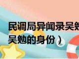 大家好,小东方来为大家解答以上的问题。民调局异闻录吴勉身份,民事调查局异闻录中吴勉的身份这个很多人还不知道,现在让我们一起来看看吧! 浏览全文>>