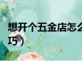 大家好,小活来为大家解答以上问题。想开个五金店怎么起步,开五金店的经验与技巧很多人还不知道,现在让我们一起来看看吧!1、不能盲目投 浏览全文>>