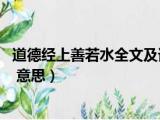 大家好,小东方来为大家解答以上的问题。道德经上善若水全文及译文,上善若水出自哪里 全文是什么 意思这个很多人还不知道,现在让我们一起 浏览全文>>