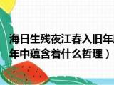 大家好,小东方来为大家解答以上的问题。海日生残夜江春入旧年所表达的哲理,海日生残夜 江春入旧年中蕴含着什么哲理这个很多人还不知道,现 浏览全文>>