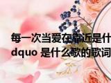 大家好,小东方来为大家解答以上的问题。每一次当爱在靠近是什么歌曲,ldquo 每一次当爱在靠近 rdquo 是什么歌的歌词这个很多人还不知道, 浏览全文>>