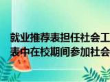 大家好,小东方来为大家解答以上的问题。就业推荐表担任社会工作及社会实践情况,毕业生就业推荐表中在校期间参加社会工作情况怎么填这个很 浏览全文>>